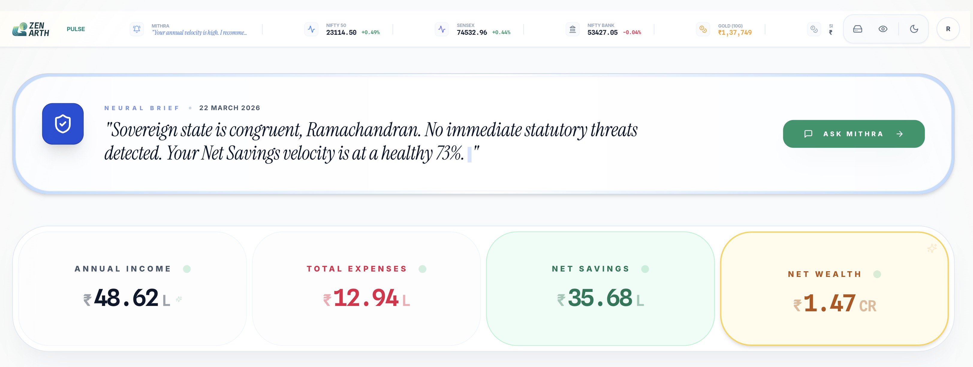 Bank apps are great for transactions and balances. ZenArth focuses on the “so what”: tax implications, savings opportunities, investments, wealth overview, and explainable insights based on your inputs.